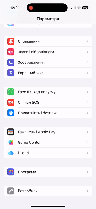Для налаштування сповіщень застосунку SICH на iPhone, відкрийте: